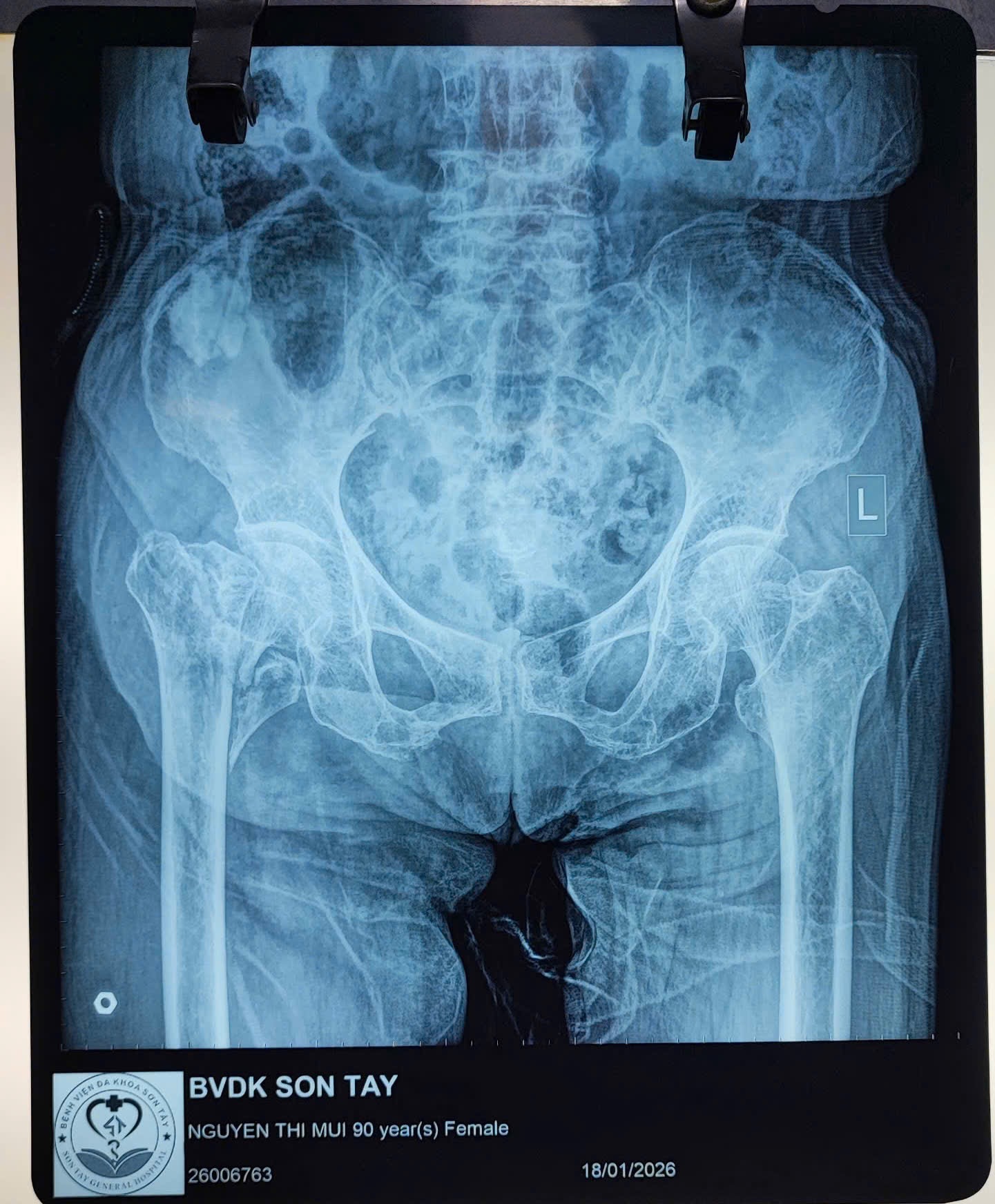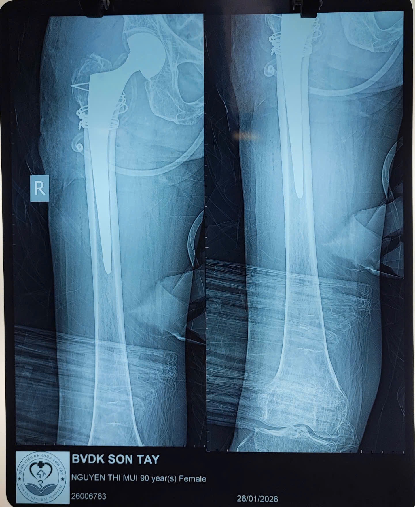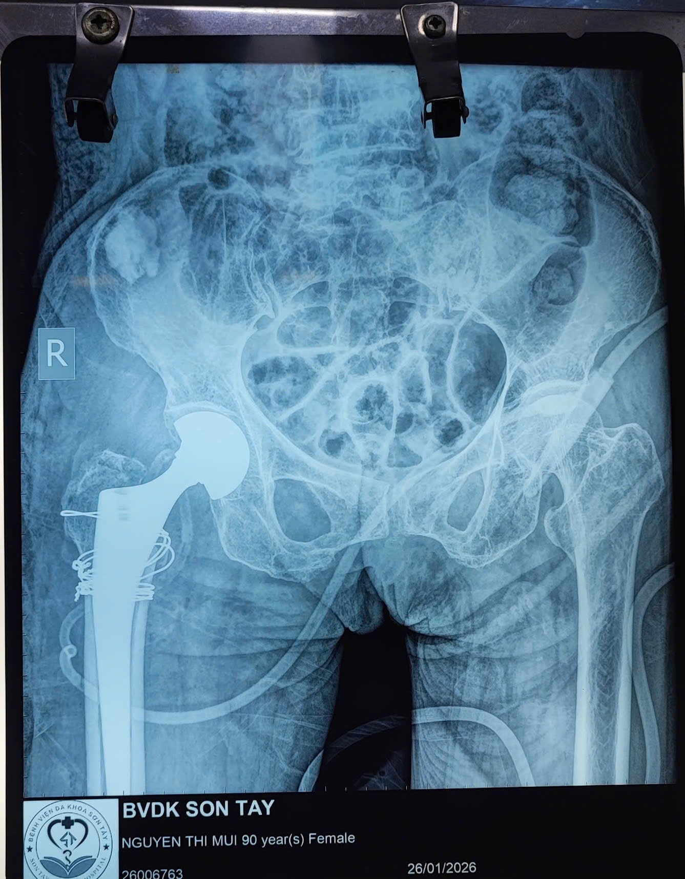 🩺 Bệnh nhân nhập viện trong tình trạng gãy phức tạp vùng liên mấu chuyển/cổ xương đùi phải trên nền loãng xương nặng, kèm nhiều bệnh lý nội khoa như tăng huyết áp, suy tim. Theo người nhà, bệnh nhân bị ngã tại nhà, đau nhiều vùng háng – đùi phải, không thể đi lại.