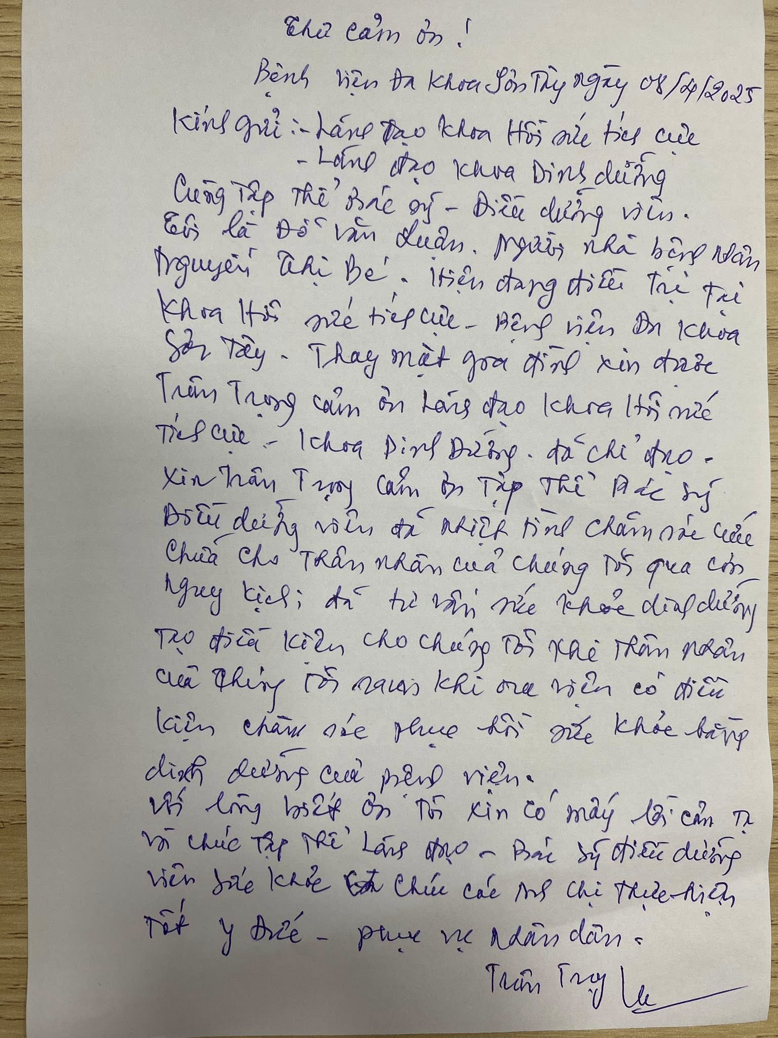💌 Trước khi ra viện, con trai bệnh nhân đã gửi lá thư cảm ơn chân thành tới toàn thể đội ngũ y bác sĩ, điều dưỡng các khoa đã tham gia điều trị. Những lời tri ân ấy chính là động lực quý báu giúp chúng tôi tiếp tục nỗ lực không ngừng vì người bệnh.