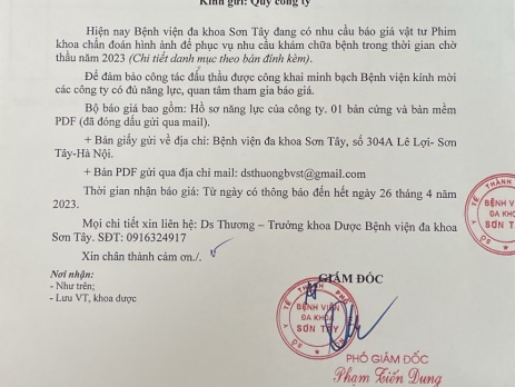 Thư mời báo giá vật tư Phim khoa CĐHA trong thời gian chờ thầu năm 2023