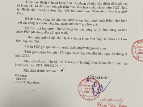 Thư mời báo giá vật tư khoa CĐHA về mua sắm hoá chất, vật tư năm 2023 lần 2