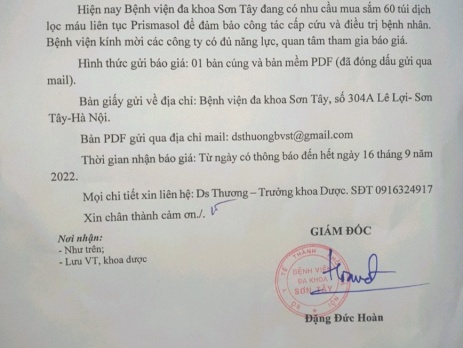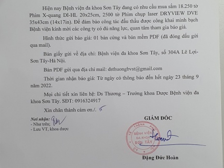 Quyết định về việc thực hiện quy trình và giá thu khám cấp giấy khám sức khoẻ tại Bệnh viện đa khoa Sơn TâyClick vào đây để tải quyết định