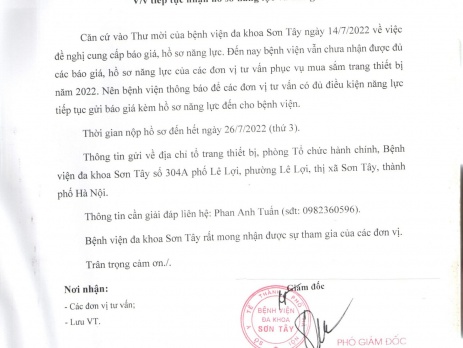 Thông báo về việc tiếp tục nhận hồ sơ năng lực và báo giá