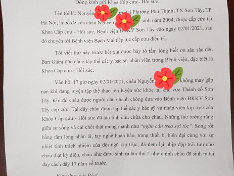 THƯ CẢM ƠN CỦA THÂN NHÂN GIA ĐÌNH BỆNH NHÂN GỬI TỚI BỆNH VIỆN ĐA KHOA SƠN TÂY
