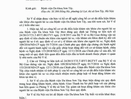 BỆNH VIỆN ĐA KHOA SƠN TÂY: CÔNG BỐ LÀ CƠ SỞ KHÁM BỆNH, CHỮA BỆNH ĐỦ ĐIỀU KIỆN KHÁM SỨC KHỎE LÁI XE