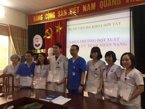 KHEN THƯỞNG ĐỘT XUẤT CHO KÍP MỔ BỆNH VIỆN ĐA KHOA SƠN TÂY ĐÃ CỨU SỐNG THÀNH CÔNG MỘT THAI NHI CÓ DÂY RAU BÁM MÀNG.