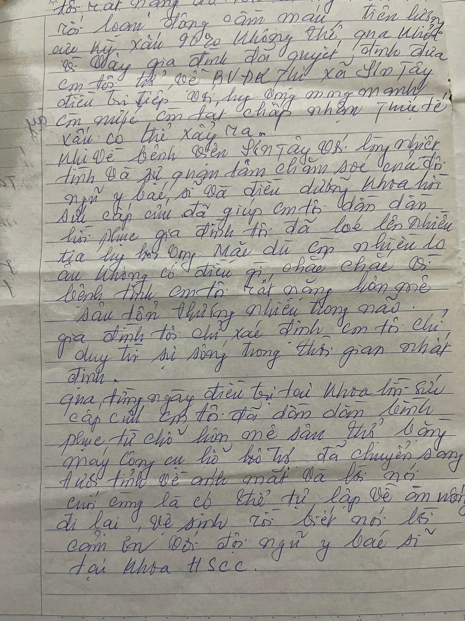 Ngay trong ngày bệnh nhân được chuyển lên một bệnh viện tuyến trung ương nhưng tại đây các bác sĩ cũng tiên lượng bệnh nhân rất nặng, tử vong bất cứ lúc nào nên giải thích gia đình cho về tuyến dưới điều trị tiếp.