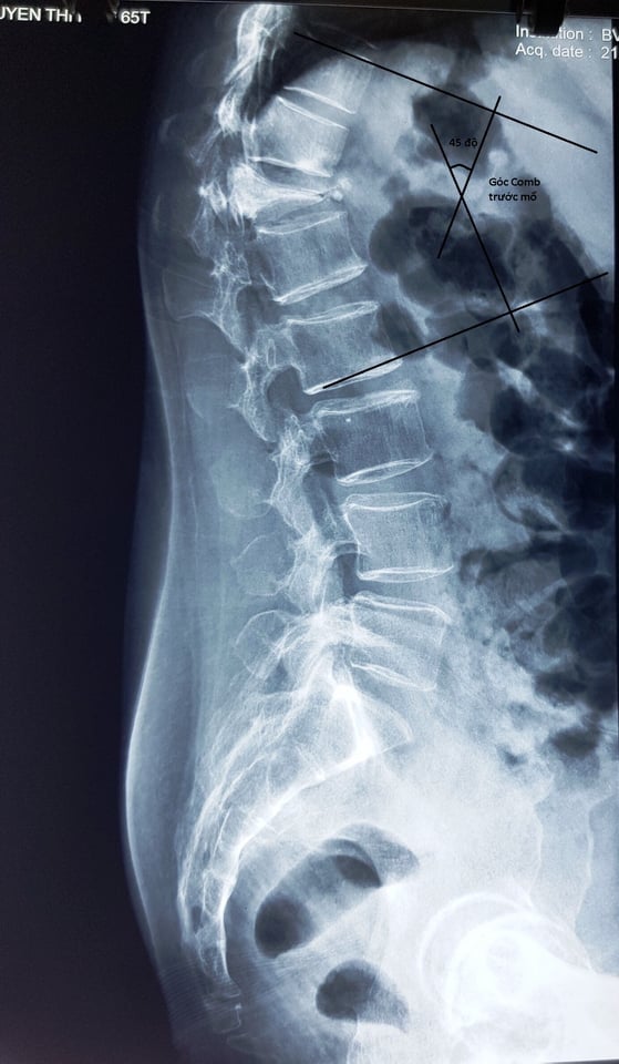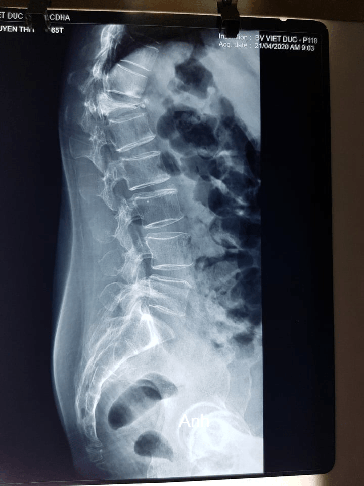 Bệnh nhân Nguyễn Thị NG 64 tuổi bị chấn thương vùng cột sống ngực nhiều tháng nay, sau chấn thương bệnh nhân đau nhiều vùng cột sống nhưng không đi khám và điều trị. Thời gian gần đây bệnh nhân đau nhiều, đau ngày càng tăng, yếu hai chân, gù cột sống, đi lại khó khăn, rối loạn cảm giác vùng bẹn, đùi. Bệnh nhân đến khám tại bệnh viện đa khoa Sơn Tây được khám và chụp phim XQ, cộng hưởng từ phát hiện bị vỡ xẹp nặng thân đốt sống ngực T 12, có mảnh xương vỡ từ thân đốt sống chèn vào tủy sống. Kíp phẫu thuật của Bệnh viện đa khoa Sơn Tây đã hội chẩn với chuyên gia về phẫu thuật cốt sống BS.Phan Minh Trung (Bệnh viện Thanh Nhàn). Bệnh nhân đã được phẫu thuật kết hợp xương nẹp vít thân đốt sống mở cung sau giải ép thần kinh. Ca phẫu thuật thành công, sau mổ bệnh nhân hết rối loạn cảm giác vùng bẹn đùi, hai chân đỡ yếu và sẽ phục hồi theo thời gian, chụp XQ hết gù cột sống.