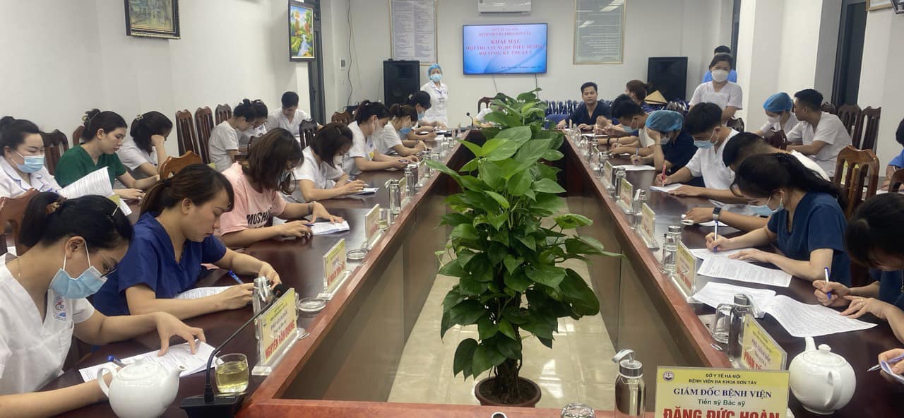Bệnh viện đa khoa Sơn Tây tổ chức hội thi tay nghề “Điều dưỡng, hộ sinh, kỹ thuật y năm 2023” trong 03 ngày từ 30/05/2023 – 01/06/2023, Hội thi hướng tới chào mừng kỷ niệm Ngày Quốc Tế điều dưỡng. Hội thi được diễn ra với 2 nội dung thi lý thuyết và thực hành chạy trạm.