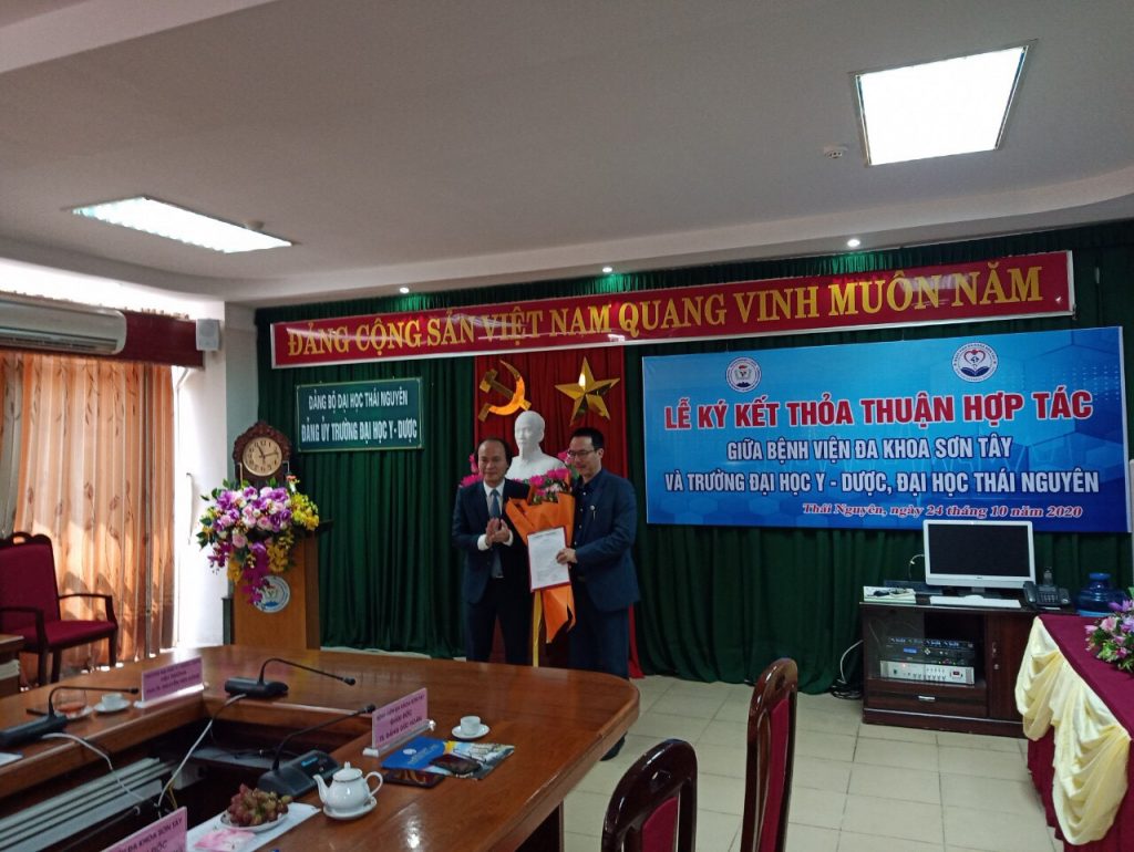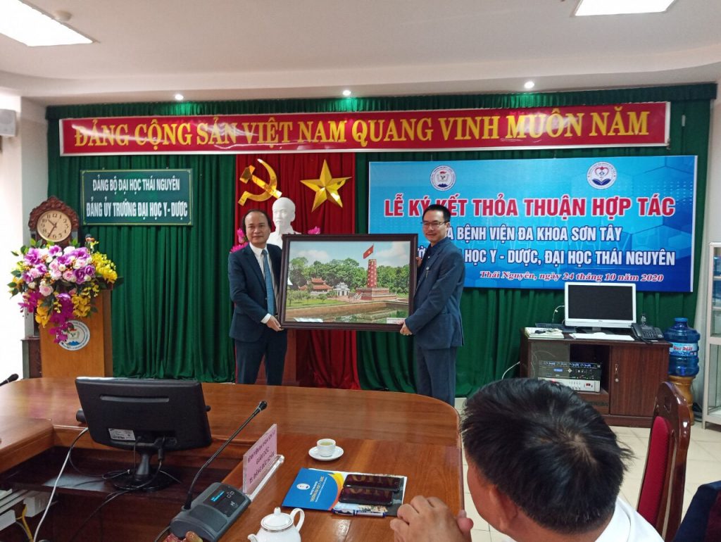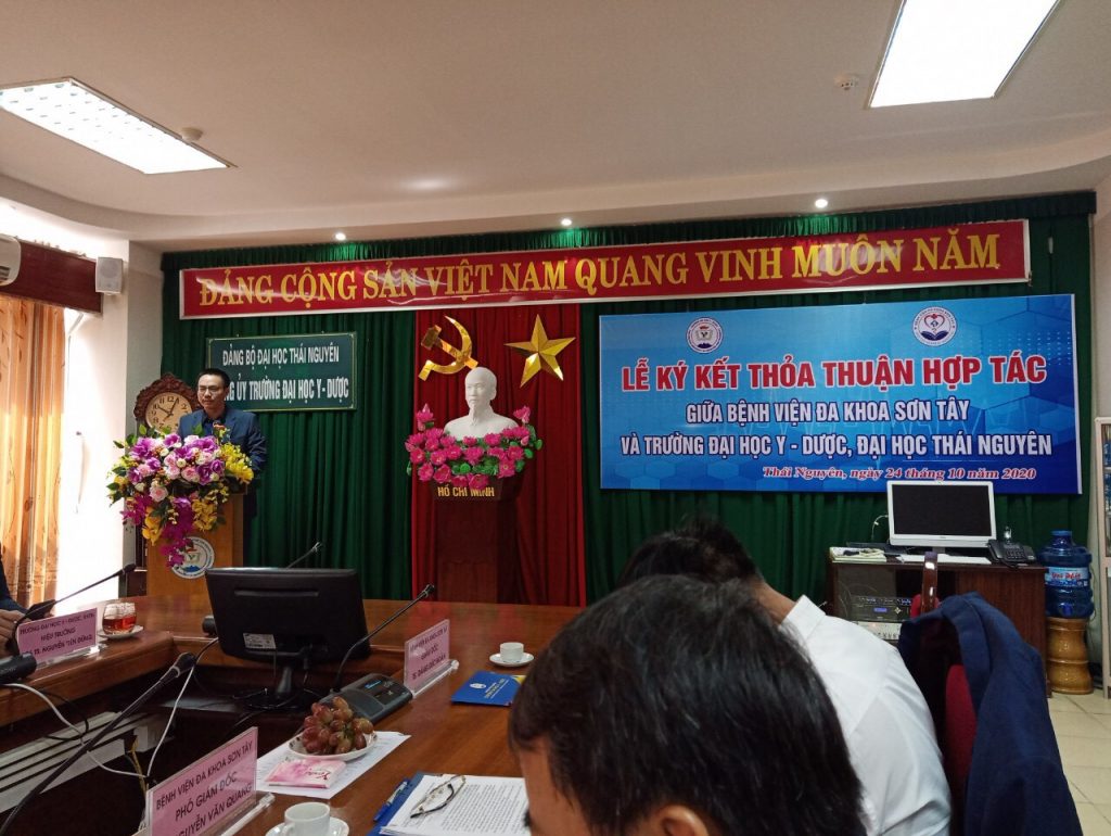 Sáng 24/10/2020, tại trường Đại học Y – Dược Thái Nguyên diễn ra lễ ký kết thỏa thuận hợp tác giữa Bệnh viện đa khoa Sơn Tây và Trường Đại học Y dược Thái Nguyên. Chương trình hợp tác bắt nguồn từ nhu cầu thực tế của 2 bên về phát triển nguồn nhân lực y tế chất lượng cao về số lượng và chất lượng trong khi nguồn cung cấp nhân lực chất lượng cao về y tế đặc biệt là bác sĩ còn hạn chế. Hai bên thống nhất hợp tác trong các lĩnh vực sau: công tác đào tạo trình độ đại học và sau đại học khối ngành khoa học sức khỏe; hợp tác trong lĩnh vực nghiên cứu khoa học và hợp tác quốc tế; hợp tác trong các hoạt động chăm sóc, phục vụ người bệnh và các hoạt động chuyên môn khác.