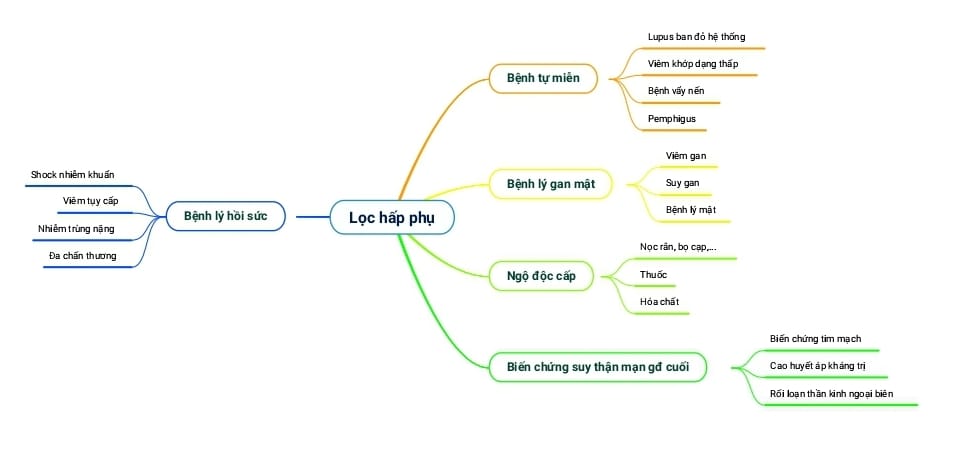 Lọc máu hấp phụ – Lựa chọn hiệu quả điều trị các bệnh lý: Bệnh tự miễn (Lupus ban đỏ hệ thống, viêm khớp dạng thấp, bệnh vảy nến, Pemphilus); Bệnh lý gan mật (Viêm gan, suy gan, Bệnh lý mật); Ngộ độc cấp; Biến chứng suy thận mạn giai đoạn cuối; Bệnh lý hồi sức (Shock nhiễm khuẩn, viêm tụy cấp, nhiễm trùng nặng, đa chấn thương)