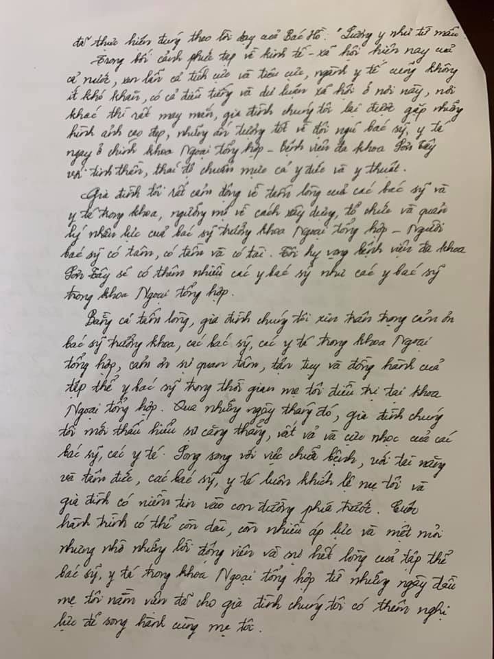 • Lời cảm ơn của gia đình người bệnh đã nói lên tất cả và đây cũng là niềm vui của các y, bác sĩ khoa Ngoại Tổng hợp – Bệnh viện đa khoa Sơn Tây.