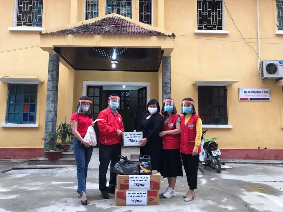 Ts,Bs Đặng Đức Hoàn – Bí thư Đảng ủy bệnh viện xin gửi lời cảm ơn sâu sắc nhất đến Mặt trận tổ quốc thị xã Sơn Tây, Hội chữ thập đỏ Thị xã Sơn Tây, Hội phụ nữ Phường Lê Lợi, nhóm các nhóm thiện nguyện.