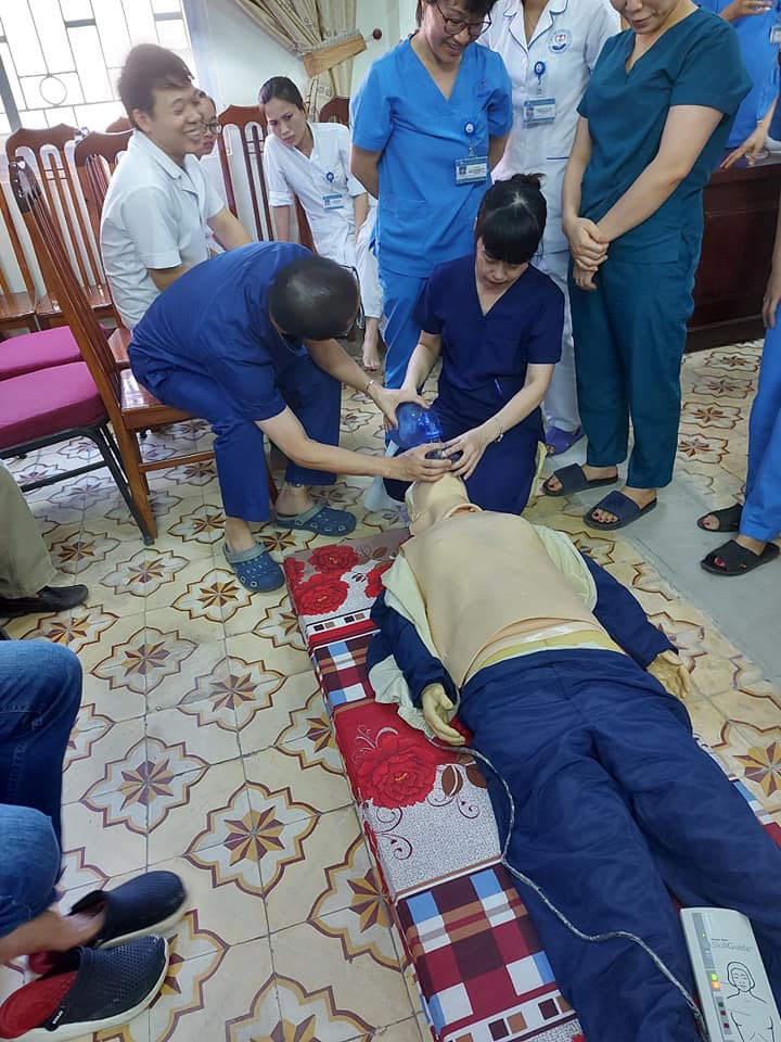 Tại lớp tập huấn, giảng viên đã truyền đạt cho học viên hiểu được đại cương ngừng tuần hoàn; nguyên nhân gây ngừng tuần hoàn; cấp cứu, cách nhận biết và kích hoạt ngay hệ thông cấp cứu khẩn cấp; một số phương pháp cấp cứu theo trình tự C-A-B, phương pháp hồi sức tim phổi nâng cao, hướng dẫn sử dụng các thuốc hợp lý và an toàn khi cấp cứu bệnh nhân; phối hợp cấp cứu nhóm… cấp cứu nhi khoa cơ bản, nhận biết trẻ bệnh nặng, sốc phản vệ, cách xử trí trẻ bị giảm tri giác, trẻ bị co giật, các kỹ năng cấp cứu ngoại chấn thương, cách vận chuyển bệnh nhân an toàn, nhận biết chẩn đoán và xử trí đúng các bệnh sản khoa như: Sản giật, chửa ngoài tử cung vỡ, U nang buồng trứng soắn, viêm phần phụ….. Các học viên được trang bị kiến thức qua các bài giảng, cập nhật kỹ năng thông qua các ca bệnh, bài tập tình huống và thực hành theo nhóm trên mô hình cùng với các trang thiết bị y tế cần thiết như: mô hình, máy monitor, mask, bóng, ông nội khí quản …