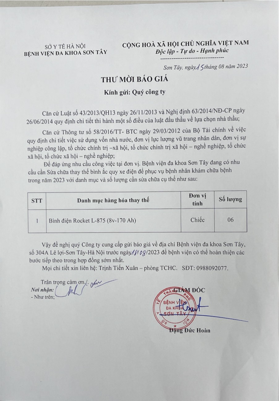 15 Th8THƯ MỜI BÁO GIÁ BVDK Sơn Tây2023-08-16T11:23:58+07:00 Tin tứcBình luậnShare this postFacebookTwitterLinkedInGoogle +