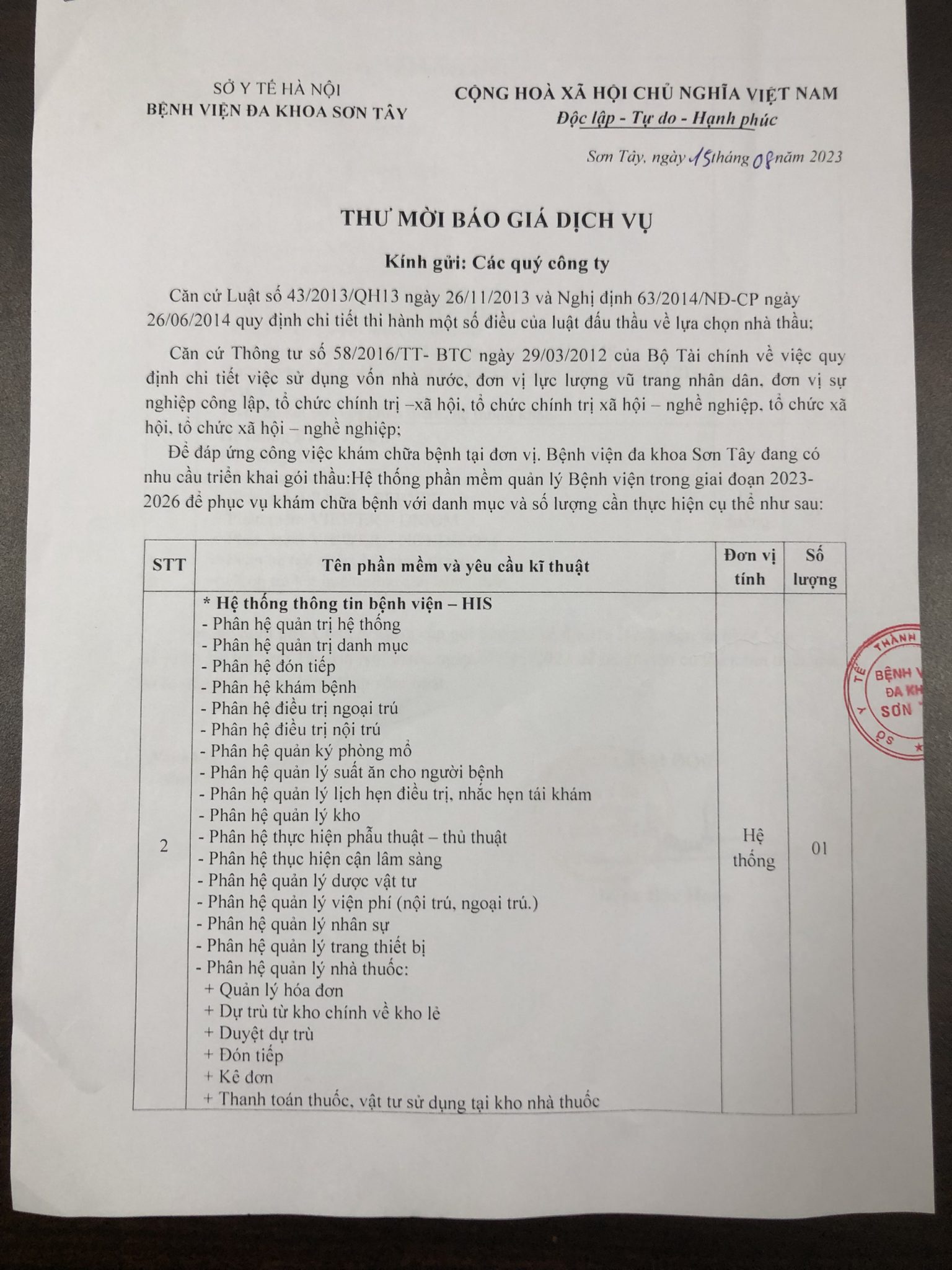 15 Th8THƯ MỜI BÁO GIÁ DỊCH VỤ BVDK Sơn Tây2023-08-16T11:23:21+07:00 Tin tức Bình luậnShare this postFacebookTwitterLinkedInGoogle +