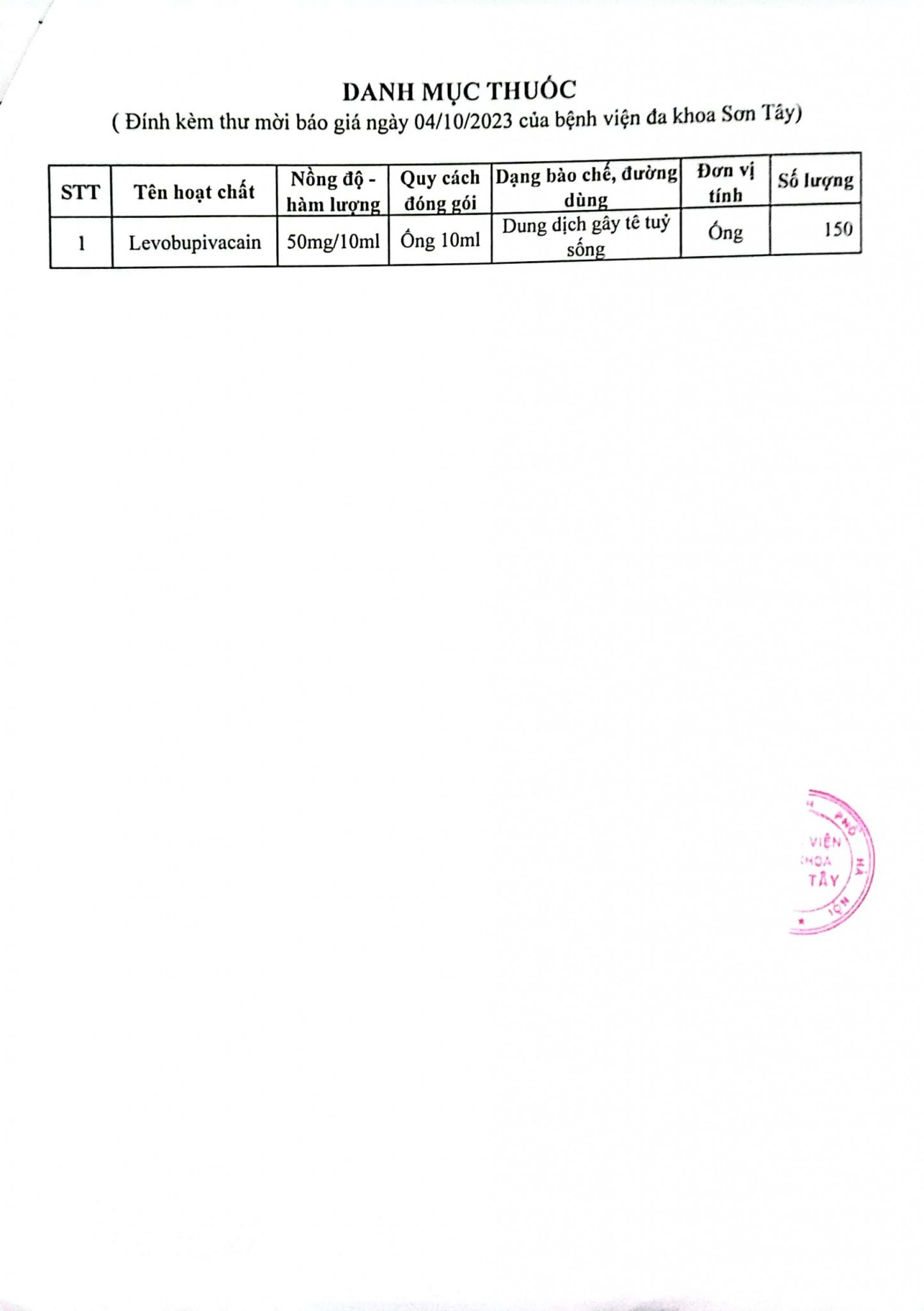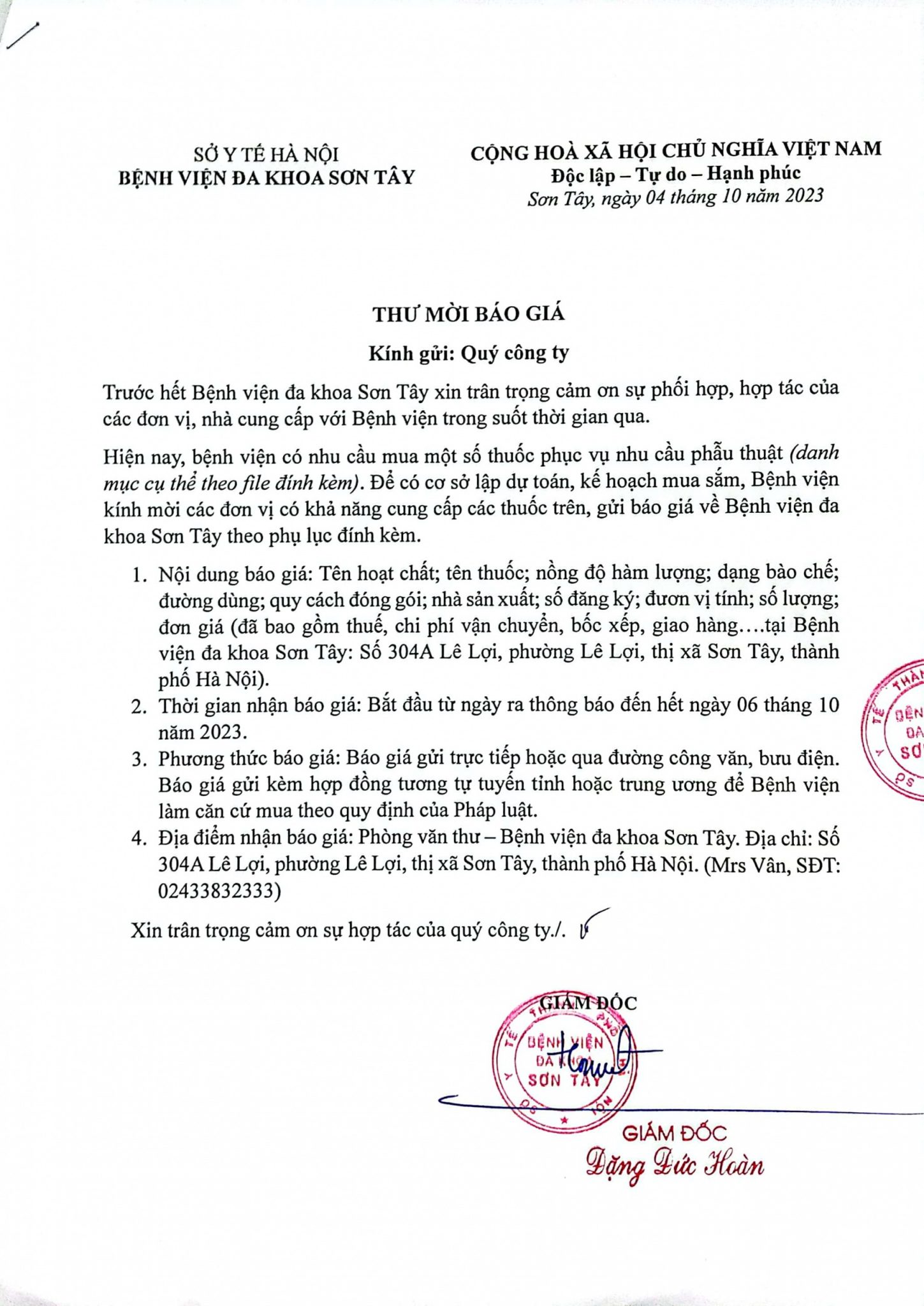 ❖ Đề nghị báo giá thuốc của Bệnh viện đa khoa Sơn Tây