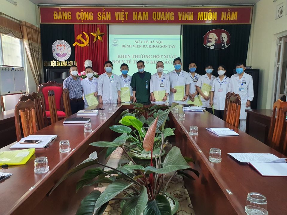 Sáng hôm nay ngày 10/4/2020 Ts,Bs Đặng Đức Hoàn – Giám đốc bệnh viện đa khoa Sơn Tây đã ký quyết định số 341/QĐ-BV khen thưởng đột xuất đội y tế trong khu cách ly vì đã hoàn thành xuất sắc nhiệm vụ được giao; Và quyết định số 342/QĐ-BV khen thưởng đột xuất kíp lọc thận nhân tạo vì đã có nhiều cố gắng trong công tác chăm sóc bệnh nhân chạy thận nhân tạo tại bệnh viện. Thời gian vừa qua, trong bối cảnh đang cải tạo, nâng cấp, Bệnh viện đa khoa Sơn Tây vẫn vừa tham gia chống dịch hiệu quả, bảo vệ cộng đồng khỏi sự lây lan của virus nguy hiểm vừa thực hiện tốt các nhiệm vụ phát triển chuyên môn, phấn đấu trở thành bệnh viện trong lòng nhân dân, là niềm tự hào của Người Sơn Tây.